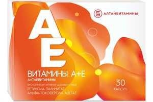 Биологически активная добавка «Витамины А+Е Алтайвитамины» содержит ретинол (витамин А) и токоферол (витамин Е). Оба этих вещества относятся к категории жизненно важных витаминов, участвующих в регуляции ключевых физиологических процессов. Сбалансированное сочетание витаминов А и Е обладает иммуностимулирующим и антиоксидантным действием, способствует регенерации тканей, положительно влияет на зрение, состояние кожи, волос и ногтей, поддерживает репродуктивную функцию организма, а также сердечно-сосудистую систему, обеспечивая нормальную проницаемость сосудов и стимулируя кровообращение.Совместный прием витаминов А и Е способствует предупреждению расстройств и патологий, вызванных их нехваткой, поддерживает правильное течение ключевых физиологических процессов при состояниях повышенной потребности в витаминах: восстановлении после заболеваний, реабилитации после травм, работе во вредных и тяжелых условиях труда, а также проживании в экологически неблагоприятных регионах. БАД «Витамины А + Е Алтайвитамины» выпускается в мягких желатиновых капсулах, что облегчает прием, обеспечивает сохранность и биодоступность входящих в него витаминов. Кроме того, действуя в комплексе, ретинол и токоферол способствуют лучшему усвоению друг друга.