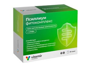 «Псиллиум + Слива Фитокомплекс» содержит компоненты растительного происхождения, которые проявляют мягкий слабительный эффект. Благодаря этому обеспечивается регулярное и комфортное освобождение кишечника. Клетчатка, будучи пребиотиком, обеспечивает оптимальные условия для развития полезных микроорганизмов, деятельность которых направлена на поддержание состояния и функционирования кишечника. Кроме того, клетчатка участвует в выведении токсинов из организма, улучшении обменных процессов (в том числе стабилизации содержания холестерина и глюкозы), содействует снижению избыточной массы тела и аппетита.Псиллиум состоит из растворимой и нерастворимой клетчатки, которая активно используется кишечными бактериями. Благодаря этому он проявляет пребиотические свойства, что положительно сказывается на поддержании роста полезных микроорганизмов, влияющих на состояние и деятельность толстой кишки. Растворимая часть пищевых волокон псиллиума способна впитывать воду и затем высвобождать избыточное ее количествов просвет кишечника, тем самым размягчая его содержимое. Вследствие этого повышается давление внутри органа и стимулируется перистальтика. Содержимое кишки быстрее продвигаетсяпо ней, что обеспечивает регулярное и более легкое освобождение кишечника. Кроме того,пищевые волокна содействуют улучшению метаболизма, нормализации содержания холестеринаи глюкозы в крови.Слива (Prunus L.) обладает вяжущим, очищающим и мягким послабляющим эффектом. За счет комбинации с пищевыми волокнами экстракт плодов сливы стимулируетпищеварение и кишечную перистальтику, способствуя лучшему опорожнению кишечника.Инулин, выделенный из корня цикория (Cichorium intybus L.), относится к группе пребиотиков — соединений, ответственных за развитие и обмен веществполезных представителей кишечной микрофлоры. Он улучшает работу ЖКТ, помогая среди прочего решить проблемы со стулом. За счет бифидогенного действия — способности стимулировать рост бифидобактерий (важнейшего класса необходимых микро-организмов), — инулин благоприятствует более полному ощущению сытости,тем самым помогая контролировать аппетит. Поэтому его употребление особеннополезно тем, кто хочет снизить избыточную массу тела.