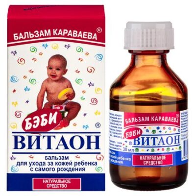 ВИТАОН БЭБИ БАЛЬЗАМ КАРАВАЕВА содержит растительные экстракты и эфирные масла с высоким содержанием биологически активных веществ и витаминов, обладающих противовоспалительным, антимикробным и ранозаживляющим свойствами.Бэби Витаон эффективно питает кожу, уменьшает раздражения и зуд, предохраняет от опрелостей, ускоряет заживление поверхностных повреждений кожи (трещин, ссадин, ожогов, в том числе солнечных), защищает кожу младенца от воздействия хлорированной воды.Бэби Витаон — прекрасное массажное масло, улучшает периферическое кровообращение и лимфоотток, нормализует мышечный тонус, обеспечивает легкое скольжение рук по телу ребенка.