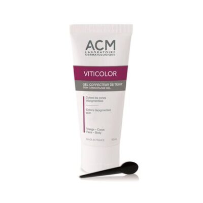 ВИТИКОЛОР VITIСOLOR гель — Камуфлирующий гель для придания натурального цвета коже на участках кожи с депигментацией. Внешний вид: Гелеобразная текстура темно-коричнего цвета без запаха Специальные особенности: Без ароматизаторов Обязательно!!! Возраст с 18 лет VITICOLOR (ВИТИКОЛОР) — камуфлирующий гель при витилиго (белые пятна на коже) для придания естественного, устойчивого и равномерного тона кожи. Французский дерматологичеcкий бренд Laboratoire Dermatologique АСМ разработал уникальное средство, занимающее лидирующие позиции среди арсенала косметических средств, нивелирующих кожные проблемы и визуально скрывающих дефекты. Средство ВИТИКОЛОР получило широкую поддержку среди потребителей, как лучшая нестандартная возможность закамуфлировать белые депигментированные (поражённые витилиго) участки кожи. ВИТИКОЛОР гель рекомендуется к применению в случаях, когда необходимо быстрое решение для маскировки депигментированных участков кожи на видимых частях тела или лица. ВИТИКОЛОР содержит нетоксичные красящие и пигментирующие вещества. ВИТИКОЛОР гель дает возможность подбирать тон подкрашивания, воспроизводит на коже глубокий, равномерный и натуральный цвет, способствует увлажнению кожи. Оттенок роявляется в течение 8 часов с момента нанесения и действует в течение 4-6 дней. Не смывается водой. Не оставляет следов на одежде. Активные ингредиенты: — гель содержит в себе нетоксичные красящие и пигментирующие вещества; — красители позволяют наносить препарат точно на поврежденное место и сразу придают коже натуральный тон; — пигментирующие вещества дигидроксиацетон (DHA) и эритрулоза поддерживают и способствуют равномерному воздействию окрашивания кожи. Действие этих пигментирующих веществ, выравнивающее цвет, проявляется спустя несколько часов после нанесения геля. Результат: ВИТИКОЛОР гель подстраивается под естественный тон кожи, надежно маскируя белые пятна на коже при витилиго или при депигментации после ожогов, порезов.