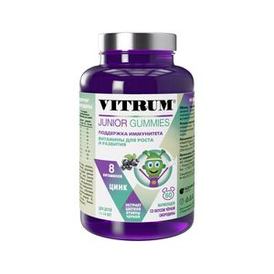 Витаминно-минеральный комплекс Витрум® Юниор мармеладки со вкусом черной смородины — для детей 11 — 14 лет. Новые мармеладки от VITRUM — это вкусный и удобный способ для заботы о здоровье вашего ребенка каждый день. Содержат сбалансированный набор витаминов и минералов: витамины Д 3, С, Е, К, витамины группы В, цинк, и природный иммуномодулятор — экстракт цветков бузины черной, для укрепления иммунитета ребенка в период вирусных заболеваний.