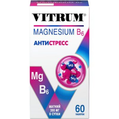 Магний (магния лактат), агент влагоудерживающий сорбитол, антислеживающий агент целлюлоза, антислеживающий агент магниевая соль стеариновой кислоты, антислеживающий агент стеариновая кислота, оболочка таблетки (стабилизатор гидроксипропилметилцеллюлоза, стабилизатор гидрокспропилцеллюлоза, антислеживающий агент целлюлоза, антислеживающий агент тальк, триглицериды среднецепочечные), антислеживающий агент диоксид кремния, витамин В6 (пиридоксина гидрохлорид).МАГНИЙ необходим для производства энергии в клетках, регуляции нервно-мышечной проводимости, тонуса, гладкой мускулатуры. Ионы магния участвуют в углеводном обмене, биосинтезе белков, тормозят процессы возбуждения в коре головного мозга.Дефицит магния сказывается на состоянии передачи нервных и мышечных импульсов, проявляются в нервозности и раздражительности.Обогащение рациона питания магнием способно поддержать нормальную работу мышц, а также оказать нормализующее воздействие на состояние нервной системы при депрессивных состояниях и при стрессах, так как стрессы различной природы увеличивают потребность в магнии.ВИТАМИН В6 чрезвычайно важен в функционировании нервной системы: он участвует в продуцировании гормонов серотонина, мелатонина, допамина. Способствует накоплению магния в клетках.Состояния недостаточности этого витамина проявляются нарушениями со стороны центральной нервной системы (раздражительность сонливость, полиневриты), и выражаются в форме повышенной утомляемости, мышечной слабости, депрессивного настроения.