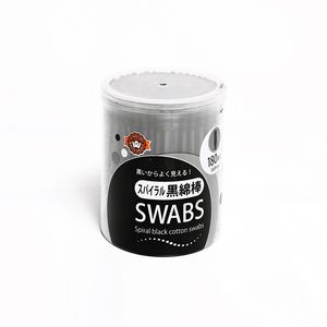 Палочки ватные косметические со спиралевидным намотом. Выглядят лаконично за счет черной расцветки. На тампоне черного цвета отчетлива видна грязь, а его спиралевидная форма удобна для чистки ушей и использования.
