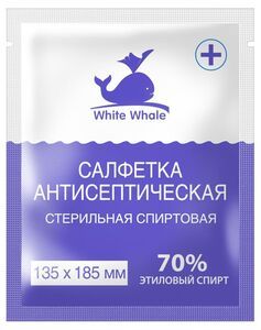 Бренд White Whale (Белый кит) — продукция из нетканого материала для косметической и медицинской сферыСалфетка антисептическая спиртовая — запах спиртосодержащей жидкости.Размер салфетки: 135 х 185 ммСтерильная: даСпиртовые салфетки локального применения для дезинфекции места при оперативном вмешательстве или инъекции а также для санитарной обработки инструментаИспользуются для дезинфекционной обработки: инструментов и оборудования украшений для пирсинга кожи рук для соблюдения противомикробной и антибактериальной гигиены для обработки кожи до и после инъекций, при заборе крови или дезинфекции ран при перевязкахГде используется?Продукция предназначена для персонала лечебно-профилактических учреждений, работников дезинфекционных станций, специалистов центров Госсанэпиднадзора Российской Федерации, а также могут быть использованы медицинскими работниками детских дошкольных и школьных учреждений, учреждений соцобеспечения.Продукция закрывает все потребности ЛПУ, начиная от обработки кожи инъекционного поля до обработки кожи локтевых сгибов доноров.Продукция удовлетворяет всем требованиям законодательства, предъявляемым к медицинским изделиям.