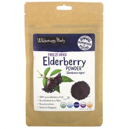 (Sambucus nigra)100% чистые плоды бузиныБез мальтодекстрина и наполнителейБез консервантовВыращено в ПатагонииСертификат USDA OrganicНе содержит ГМОВеганский продуктБез глютенаНе содержит добавленного сахараПростые ингредиенты растительного происхожденияВысокое содержание питательных веществ — суперфудПридайте блюдам живой цветОрганический продукт, сертифицированный Organic CertifiersОрганический порошок бузины Wilderness Poets содержит множество антиоксидантов и полифенолов. Черная бузина — чудесный союзник, который нужно держать в шкафу! На протяжении веков его использовали для поддержки здоровья иммунной системы в виде чая или сиропа.