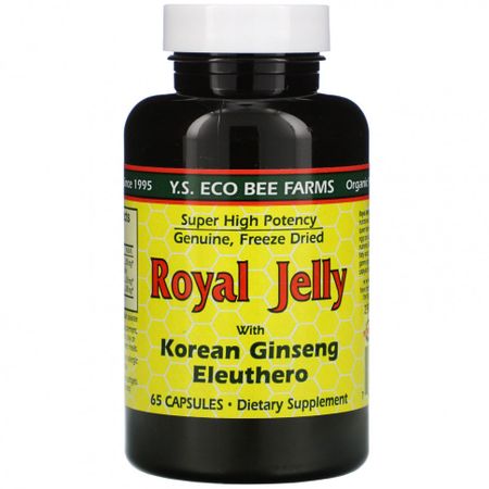 Дополнительные факты Размер порции: 1 капсула Порций в контейнере: 65 Количество на порцию % DV Royal Jelly (лиофилизированный 3,5 раза), эквивалентный 875 мг Fresh Royal Jelly 250 мг * Корейский женьшень (корень) 150 мг * Элеутеро (корень) 100 мг * *%Суточная доза не определена Первопроходец в области натуральных продуктов с 1995 года Сверхвысокая эффективность Настоящий свежевымороженный продукт Пищевая добавкаСвежее маточное молочко содержит питательные компоненты природного суперпродукта, которым питается пчелиная матка, откладывающая более 2000 яиц в день. Это целый склад природных соединений: всего ряда витаминов группы B, незаменимых аминокислот, жирных кислот, фитостеролов, ферментов, ацетилхолина, гамма-глобулина, лецитина, 10-HDA, каталитического фактора ‘R’ и многих других веществ.Многие поколения пчеловодов в Y.S. посвятили себя исследованию и разработке пчелиной продукции высочайшего качества.