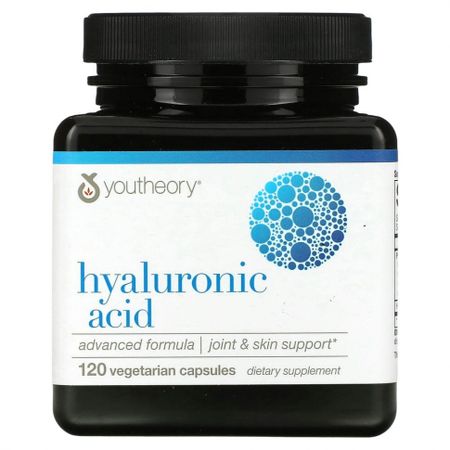 Гиалуроновая кислота Youtheory® содержит 100 мг сверхчистой гиалуроновой кислоты на одну порцию, что помогает улучшить здоровье суставов и кожи.