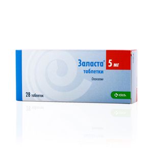 Показания к применениюДля лечения шизофрении (Заласта эффективно поддерживает улучшение клинической симптоматики при длительном лечении у пациентов с исходной положительной реакцией на препарат); для лечения умеренных или тяжелых эпизодов мании; для профилактики рецидивов мании при биполярном расстройстве (у пациентов с маниакальными эпизодами при хорошем эффекте терапии оланзапином).Применение при беременности и кормлении грудьюВ связи с ограниченным опытом применения препарата у беременных оланзапин следует применять, только если ожидаемая польза для матери оправдывает потенциальный риск для плода. Женщины должны быть проинформированы о необходимости сообщить врачу о наступившей или планируемой беременности на фоне терапии оланзапином. Имеются единичные сообщения о треморе, артериальной гипертонии, летаргии и сонливости у детей, рожденных от матерей, принимавших оланзапин в III триместре беременности.В исследовании было выявлено, что оланзапин выделяется в грудное молоко. Средняя дозировка (мг/кг), получаемая ребенком при достижении равновесной концентрации у матери, составляла 1,8% дозы оланзапина матери (мг/кг). Не рекомендуется кормление грудью на фоне терапии оланзапином.ПротивопоказанияЗакрытоугольная глаукома; детский возраст до 18 лет (эффективность и безопасность не установлены); период лактации; непереносимость галактозы, дефицит лактазы lapp или нарушение всасывания глюкозы-галактозы; повышенная чувствительность к оланзапину или другим компонентам препарата.Состав1 таблетка содержит:оланзапин 5 мг.Вспомогательные вещества: целлактоза (высушенное распылением соединение, состоящее из 75% альфа-лактозы моногидрата и 25% целлюлозы), крахмал прежелатинизированный, крахмал кукурузный, кремния диоксид коллоидный безводный, магния стеарат.