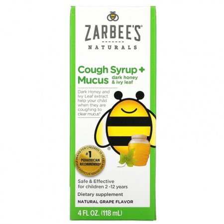 Zarbee’s, детский сироп от кашля с отхаркивающим действием, с темным медом и листом плюща, с натуральным вкусом винограда, для детей возрастом 12 месяцев и старше, 118 мл (4 жидк. унции)