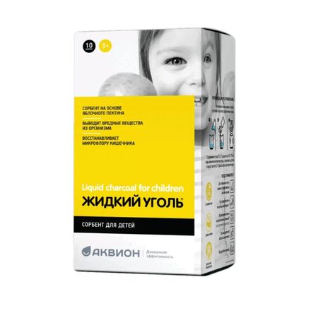 «Жидкий уголь для детей» — это комплекс из натурального яблочного пектина, инулина и экстракта фенхеля. Двойное действие компонентов: выводят вредные вещества из организма, восстанавливают микрофлору кишечника. Удобная форма приема Выпускается в форме порошка для приготовления раствора — саше для приготовления напитка легко дозировать и брать с собой. Приятный вкус — пектин придает напитку натуральный яблочный вкус. Прием 10-15 г продукта обеспечит поступление: Пищевые волокна (пектин и инулин) 1,2-1,8 г Активные ингредиенты: • Пектин — природный сорбент (очищает организм). Пектин устраняет причину и симптомы интоксикации. Выводит из организма вредные вещества: токсины, аллергены, продукты распада лекарств, желчные кислоты, гистамин, билирубин, тяжелые металлы. Связывает и выводит ионы тяжелых металлов. Пектин устраняет причину диареи, поскольку блокирует адгезию болезнетворных микроорганизмов к стенке кишечника, связывает и выводит микроорганизмы и выделяемые ими токсины, нормализует работу кишечника и стул. Пектин выводит аллергены и ускоряет исчезновение симптомов аллергии. • Инулин — пребиотик (нормализует микрофлору кишечника) Инулин способствует восстановлению собственной полезной микрофлоры кишечника. Вещества, отравляющие человеческий организм, губительно действуют и на микрофлору кишечника, поэтому Жидкий уголь усилен пребиотиком. Инулин является питательной средой для полезных бифидо- и лактобактерий, заселяющих нижние отделы кишечника. «Недружественные» организму бактерии не могут питаться инулином. Подавляет рост вредных микроорганизмов. Инулин обладает «обволакивающим действием», защищая слизистые оболочки желудка и кишечника от механического раздражения пищей. • Фенхель Экстракт фенхеля (мягкий природный спазмолитик, который разрешен даже маленьким детям) уменьшает дискомфорт и вздутие, устраняет спазмы и другие неприятные ощущения в животе ребенка, нормализует моторику ЖКТ. Обладает ветрогонными свойствами, улучшает моторику кишечника. БАД к пище «Комплекс с пектином Жидкий уголь® для детей» будет полезным: • для очищения организма и профилактики интоксикации; • при нарушениях работы кишечника, • при дисбактериозе, • в составе комплексной терапии при возникновении аллергических реакций (для удаления аллергенов), отравлениях и кишечных инфекциях.