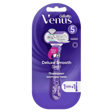 Женская бритва Venus Swirl. Venus Swirl — это лучшие лезвия Venus и ручка с запатентованным шариком Flexiball. Благодаря технологии FlexiBall бритва легко адаптируется к контурам вашего тела для безупречного бритья. Преимущества: — 5 лезвий и технология FlexiBall позволяет удалить фактически каждый волосок; — Встроенная технология FlexiBall легко адаптируется к контурам вашего тела, обеспечивая максимальный контакт между бритвой и кожей, даже в таких проблематичных местах, как лодыжки; — Каждое из пяти лезвий мягко вытягивает волосок, срезая его ближе к корню. Результат — гладкость длится еще дольше! — Лезвия с алмазоподобным покрытием легко срезают волоски, обеспечивая невероятно гладкое бритье. Качественное бритье — меньше движений! Любая сменная кассета Venus подходит к любой бритвенной ручке Venus (кроме Simply Venus и Venus для зоны бикини).