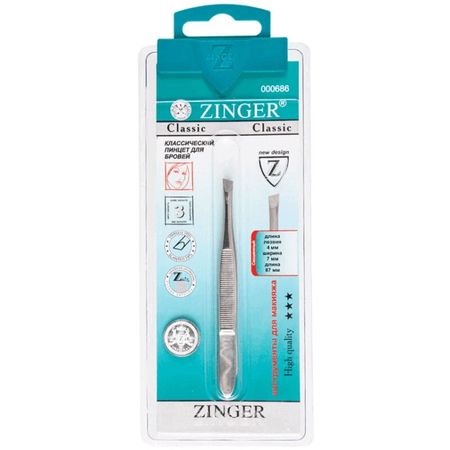Пинцет скошенный Zinger B-158 для выщипывания бровей. Пинцет особенно удобен для удаления «сложных» волосков. Изготовлен из качественной стали, заточен вручную. Благодаря внешней и внутренней заточке позволяет захватить самые тонкие и короткие волоски. Предотвращает скольжение пальцев и выскальзывание, ребристые ручки инструмента. Цвет серебристый.