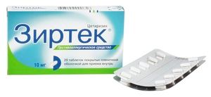 Показания к применению— лечение симптомов круглогодичного и сезонного аллергического ринита и аллергического конъюнктивита, таких как зуд, чиханье, ринорея, слезотечение, гиперемия конъюнктивы;— сенная лихорадка (поллиноз);— крапивница (в т.ч. хроническая идиопатическая крапивница);— отек Квинке;— другие аллергические дерматозы (в т.ч. атопический дерматит), сопровождающиеся зудом и высыпаниями.Применение при беременности и кормлении грудьюПрепарат противопоказан к применению при беременности и в период лактации (грудного вскармливания).Противопоказания— терминальная стадия почечной недостаточности (КК < 10 мл/мин);— беременность;— период лактации (грудного вскармливания);— наследственная непереносимость галактозы, недостаток лактазы или синдром глюкозо-галактозной мальабсорбции;— детский возраст до 6 лет (для таблеток);— детский возраст до 6 мес (для капель);— повышенная чувствительность к компонентам препарата;— повышенная чувствительность к гидроксизину.С осторожностью следует назначать препарат при хронической почечной недостаточности (требуется коррекция режима дозирования), при хронических заболеваниях печени, пациентам пожилого возраста (в связи с возможным снижением клубочковой фильтрации).СоставЦетиризина дигидрохлорид 10 мг.Вспомогательные вещества: целлюлоза микрокристаллическая, лактозы моногидрат, кремния диоксид коллоидный, магния стеарат; Опадрай; Y-1-7000 (гипромеллоза (Е464), титана диоксид (Е171), макрогол 400).