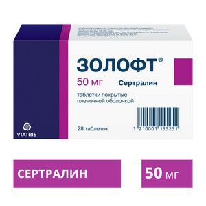 Показания к применению— депрессии различной этиологии (лечение и профилактика); — обсессивно-компульсивные расстройства (ОКР); — панические расстройства; — посттравматические стрессорные расстройства (ПТСР); — социальная фобия.Применение при беременности и кормлении грудьюКонтролируемых результатов применения сертралина у беременных женщин нет, поэтому назначать Золофт при беременности можно только в том случае, если ожидаемая польза для матери превышает потенциальный риск для плода. Женщины репродуктивного возраста во время лечения сертралином должны использовать эффективные методы контрацепции. Сертралин обнаруживается в грудном молоке, в связи с чем применение препарата Золофт в период лактации не рекомендуется. Достоверных данных о безопасности его применения в этом случае нет. Если же назначение препарата необходимо, то грудное вскармливание следует прекратить. В случае применения сертралина при беременности и в период грудного вскармливания у некоторых новорожденных, матери которых принимали антидепрессанты из группы селективных ингибиторов обратного захвата серотонина, включая серотонин, могут наблюдаться симптомы, сходные с реакцией на отмену препарата.Противопоказания— одновременное назначение ингибиторов МАО и пимозида; — беременность; — период лактации (грудного вскармливания); — детский возраст до 6 лет; — повышенная чувствительность к сертралину. С осторожностью следует применять препарат при органических заболеваниях головного мозга (в т.ч. задержке умственного развития), эпилепсии, печеночной и/или почечной недостаточности, выраженном снижении массы тела.СоставСертралин (в форме гидрохлорида) 50 мг Вспомогательные вещества: кальций фосфорнокислый, целлюлоза микрокристаллическая, гидроксипропилцеллюлоза, натрия крахмала гликолат, магния стеарат, гидроксипропилметилцеллюлоза, полиэтиленгликоль, полисорбаты, титана диоксид (Е171).