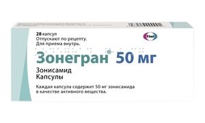Показания к применению— монотерапия у взрослых пациентов с парциальными эпилептическими приступами с вторичной генерализацией или без, с впервые диагностированной эпилепсией;— в составе дополнительной терапии у взрослых, подростков и детей с 6 лет с парциальными эпилептическими приступами с вторичной генерализацией или без.Применение при беременности и кормлении грудьюЖенщины с сохраненным детородным потенциаломЖенщины с сохраненным детородным потенциалом должны применять надежные методы контрацепции во время лечения препаратом Зонегран; и на протяжении 1 месяца после его отмены.БеременностьНет достаточных данных о применении препарата Зонегран; у беременных женщин. Исследования на животных показали, что зонисамид потенциально обладает репродуктивной токсичностью, риск возникновения которой у людей неизвестен.Зонегран; не следует применять во время беременности, за исключением тех случаев, когда потенциальные преимущества, по мнению врача, преобладают над возможным риском для плода. Если женщина планирует беременность, следует проанализировать необходимость противосудорожной терапии. В случае назначения препарата Зонегран; рекомендуется тщательное наблюдение.Риск возникновения врожденных пороков развития у детей, чьи матери принимают противоэпилептические препараты, возрастает в 2-3 раза. Чаще всего выявляются следующие пороки: расщепление верхней губы, аномалии развития сердечно-сосудистой системы и дефекты нервной трубки. Комбинированная терапия противосудорожными препаратами сопровождается повышением риска развития врожденных пороков в сравнении с монотерапией.Недопустима резкая отмена противосудорожной терапии из-за риска развития эпилептического приступа, который может привести к серьезным последствиям, как для матери, так и для ребенка.Грудное вскармливаниеПрепарат выделяется с грудным молоком в концентрациях, аналогичных таковым в плазме, поэтому следует принять решение о прекращении кормления грудью или об отмене препарата у кормящих матерей. Вследствие длительного периода полувыведения грудное вскармливание может быть возобновлено не ранее чем через месяц после отмены препарата.Состав1 капсула содержит: зонисамид 50 мг.Вспомогательные вещества: масло растительное гидрогенизированное — 1.5 мг, целлюлоза микрокристаллическая — 98.12 мг, натрия лаурилсульфат — 0.38 мг.Состав капсульной оболочки: желатин — 46.575 мг, титана диоксид (E171) — 1.353 мг, краситель железа оксид черный (E172) — 0.072 мг, чернила 1014 Текпринт SW-9008 (шеллак — 36.0-40.5 мкг, пропиленгликоль — 4.5-10.5 мкг, калия гидрохлорид — 0.075-0.150 мкг), краситель железа оксид черный (E172) — 36.0-42.0 мкг).