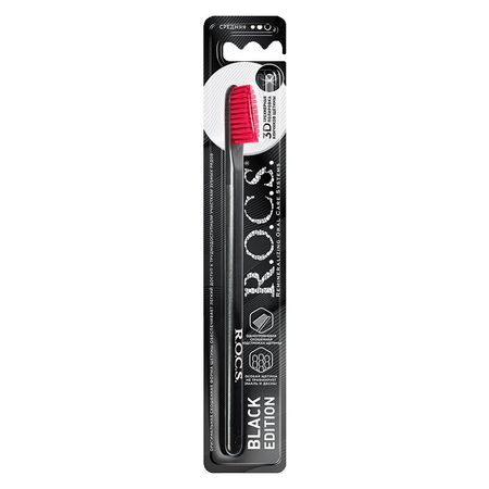 Зубные щетки R.O.C.S. заметно выделяются в категории, первое, что обращает на себя внимание — их простота и стиль. Кажущаяся простота в процессе использования раскрывается рядом преимуществ:Цвет и форма ручки: Тонкая легкая ручка из безопасного высококачественного пластика Цвет щетины черная, красная , розовая, желтая и др.Жесткость щетины: средняя.ОСОБЕННОСТИ:-Высококачественное волокно, текстурированная структура щетины-Технология тройной полировки кончиков: щетинки идеально закругленные и гладкие-Нетрадиционная скошенная подстрижка-Тонкая легкая ручка из безопасного высококачественного пластикаПРЕИМУЩЕСТВА:-Эффективная чистка-Легкий доступ к дальним зубам-Безопасность для десен-Гигиеничность (гладкие поверхности и отсутствие дополнительных деталей препятствуют скоплению и размножению бактерий)За счет скошенной подстрижки щетины щетка легко проникает к дальним зубам.Форма щетки, повторяющая контуры зубного ряда, обеспечивает качественную очистку всех поверхностей зубов, в том числе труднодоступных.Легкая тонкая ручка предотвращает излишнее давление при чистке.Разработана при участии стоматологов.Результат: Чистая, блестящая поверхность зубов. Яркая улыбка.