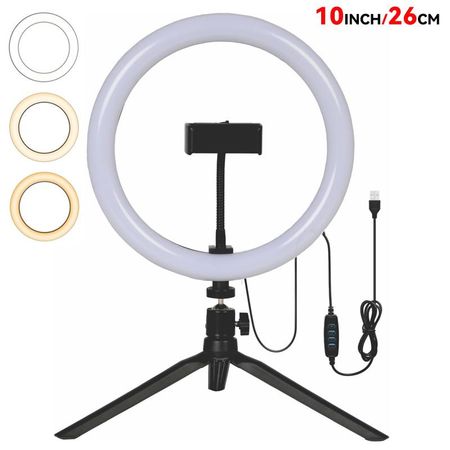 10-дюймовая кольцевая лампа для селфи 26 см, заполняющее освещение для фотосъемки, светодиодная кольцевая лампа для видеозаписи, светодиодная лампа для селфи в прямом эфире белый