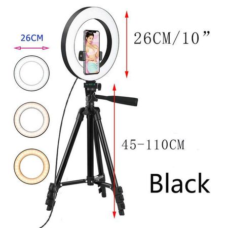 26 см светодиодный кольцевой светильник для селфи, круговой заполняющий светильник с регулируемой яркостью, лампа для макияжа, кольцевая подсветка для фотосъемки, подставка для телефона, держатель, штатив None
