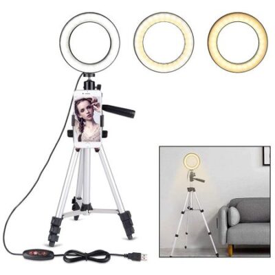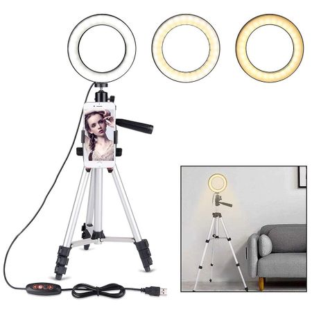Главная » Электроника и фото 5,7-дюймовый светодиодный кольцевой светильник 3 режима освещения 10 уровней яркости Светодиодный светильник со штативом для видеосъемки Просмотров 4 Yexin Dian