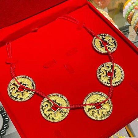Мода Поясной Квадратный Позолоченный Элемент Jinbao Поясной Свадебный Фотореквизит Монеты из Искусственного Золота Wanguan Три Золотых Украшения A round Dragon and Phoenix gold coin [20g]]
