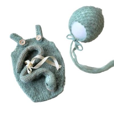 Набор для новорожденного Год Змеи с ажурной шапочкой в виде змеи и легким мохеровым материалом 3 месяца [Магазин NANA s] Ромпер, 0-3 месяца, Матча, Белый, Зеленый,