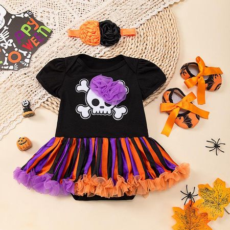 Оранжевые тыквы детские костюмы на Хэллоуин для девочек комплекты одежды для новорожденных кружевной комбинезон Petti детская обувь повязка на голову 3 шт. детская одежда 59