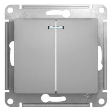 Выключатель Шнайдер Глосса 2-клавиши с подсветкой, сх.5а, 10ах, механизм, алюминий