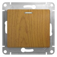Выключатель Шнайдер Глосса 1-клавиша с подсветкой, сх.1а, 10ах, механизм, дерево дуб