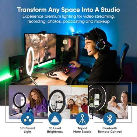 Главная » Электроника и фото Photography 10 Inch Ring Light with Carry Bag Includes Flex Phone Holder Clip for Most Tripods and Remote for Cell Phones Unive United States Просмотров 9 Auto Launcher