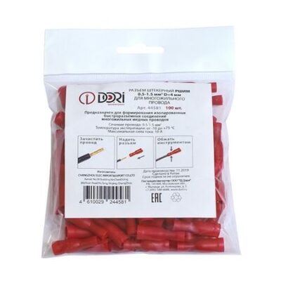 Главная » Электроника и фото Разъем штекерный изолированный DORI круглый (РШИМ) 0,5 — 1,5мм2 d=4мм, 100шт Просмотров 6 Разъем штекерный изолированный DORI круглый (РШИМ) 0,5 — 1,5мм2 d=4мм, 100шт DORI