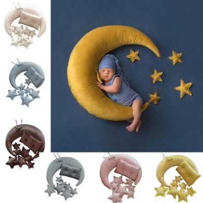 Реквизит для фотосъемки новорожденных, подушка для позирования с изображением луны и звезд, квадратный комплект подушек для фотосъемки младенцев, аксессуары для фотосъемки