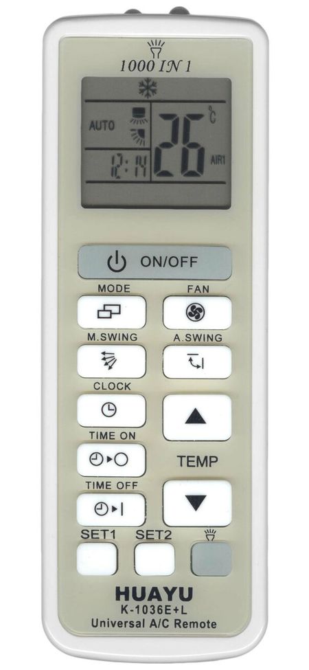 Пульты дистанционного управления производителя HUAYU одни из лучших на рынке с точки зрения содержания, они собраны на микросхеме SOP высочайшего качества, а корпус выполнен из ударопрочного АБС-пластика. По качеству пульты HUAYU K-1036EL сопоставимы с оригинальными пультами производителей техники, и проходят проверку по сертификации CE. Сертификат соответствия СЕ — это международный сертификат соответствия Директивам Объединенной ЕвропыУниверсальный пульт HUAYU K-1036EL совместим с большинством моделей и марок кондиционеров, имеет удобную функцию автоматического поиска кода, увеличенную рабочую дистанцию и лёгкую процедуру настройки. А так же информативный дисплей и удобный корпус. Так же к достоинствам пульта для бытовых кондиционеров HUAYU K-1036EL можно отнести возможность сохранения двух разных кодов (Set 1 Set 2)Кондиционеры разных производителей имеют разные коды частот соединения с пультом, поэтому для работы пульта потребуется его настроить на частоту кондиционера. Характеристики:Тип пульта: для кондиционеров, универсальный Материал: АБС-пластикЭлементы питания: ААА 1,5В, две штуки (в комплект не входят)Размер: 146 x 47 x 25 ммПодходит для: LG; AKIRA; DAEWOO; ELCO; GOLDSTAR; HAIER; HITACHI; KONKA; MITSUBISHI; PANASONIC; SAMSUNG; SANYO; SHARP; SHINCO; TCL; TECO; TOSHIBA; GREE; MIDEA; GALANZ; ROWA; CROWN; SIGMA; YORK; CHANGHONG; TEAC; HISENSE; ALPINE; PILOT; PANDA; CHUNLAN; AUX; ELECTROLUX; FUJITSU; HUABAO; SOWA; WANBAO