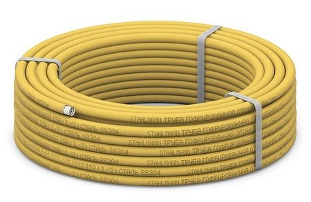 Stahlmann (Штальманн) Труба SS304 15A, отожженная в оболочке желтая, 10м легко изгибается без специального оборудования, не нарушая ее проточного сечения, не вызывая микротрещин и механических напряжений на металле. Упакована в желтую полиэтиленовую оболочку и предназначена для использования в газовых установках.