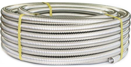 Теплоотдача нержавеющей гофры выше на 20% пластиковых аналогов. Система будет тем эффективнее, чем больше площадь обогреваемого помещения.
