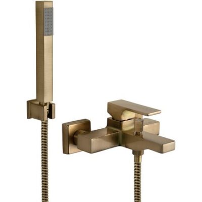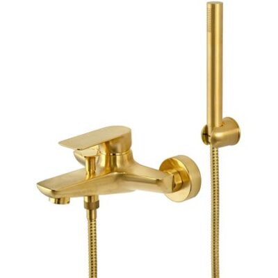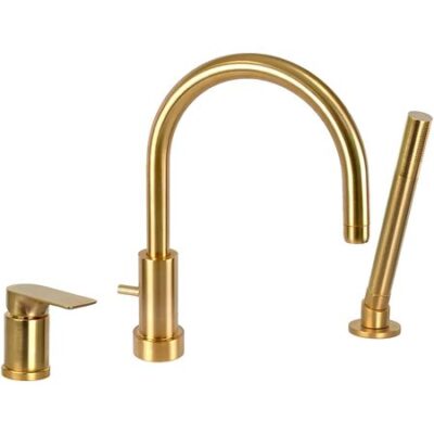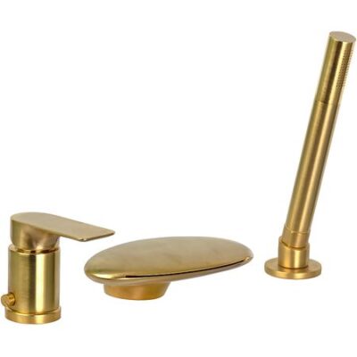 Смеситель на борт ванны Remer Infinity I07BG с душевым гарнитуром. Характеристики: Цвет: золото брашированное. Материал: латунь. Управление: однорычажное.