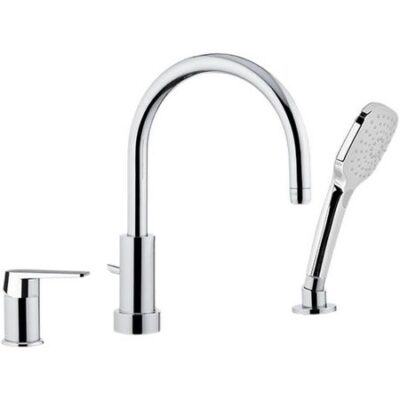 Смеситель на борт ванны Remer Dream D078CP с душевым гарнитуром. Характеристики: Цвет: хром. Материал: латунь. Управление: однорычажное.