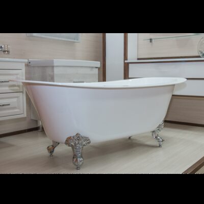 Преимущества Великолепное сочетание белоснежного акрила с хромированными ножками Ванна имеет плавную обтекаемую форму, спинки которой разработаны с учетом