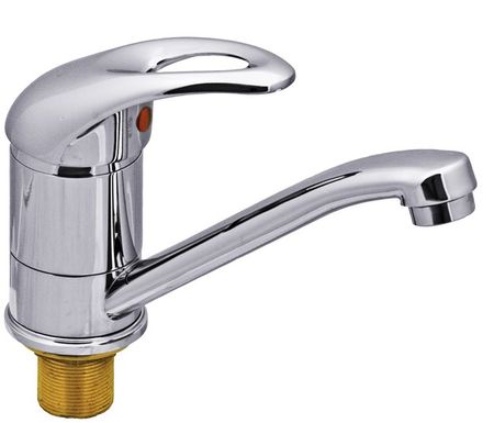 Материал изделия — латунь Длина вылета излива — 15 см Комплектация: • корпус смесителя • крепежная гайка к раковине из латуни • паспорт смесителя