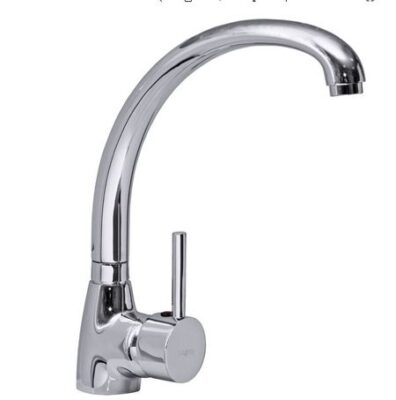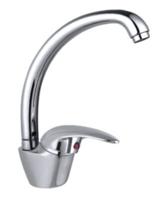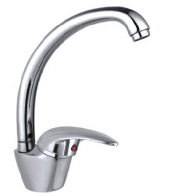 Материал изделия — латунь Высокий, поворотный излив Комплектация: • корпус смесителя • излив • крепеж к мойке • паспорт смесителя Примечание: комплектация