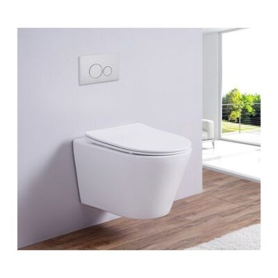Особенности унитаз с безободковой системой слива горизонтальный выпуск P-Trap диаметр выпуска 100 мм меж осевое крепление 180 мм материал: фаянс цвет
