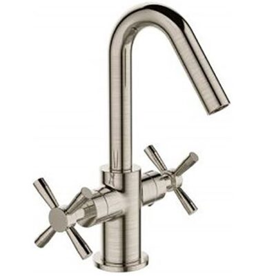 Смеситель для раковины Orange Mia M34-011Ni двухзахватный. Смеситель с поворотным изливом в цвете никель, крепится на сантехнику, идеально подходит для