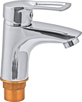 Материал изделия — латунь Покрытие — хром Установка под 1/2 гайку Комплектация: • корпус смесителя • крепеж к умывальнику: гайка • паспорт
