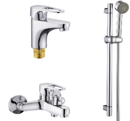 Набор из 2-х смесителей Материал изделия — латунь Комплектация: • смеситель на умывальний однорычажный • смеситель ванно-душевой однорычажный с коротким