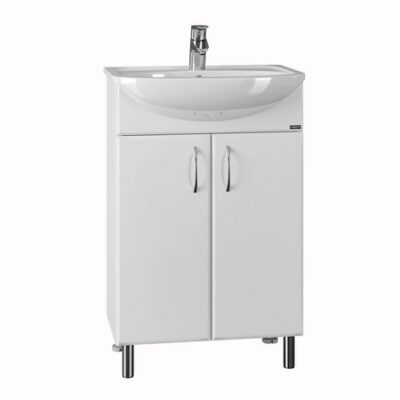 Хорошим дополнением к современному гарнитуру станет тумба универсального белого цвета СанТа Уют 55. Конструкция подразумевает 2 ящика и 2 дверцы, за которыми