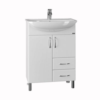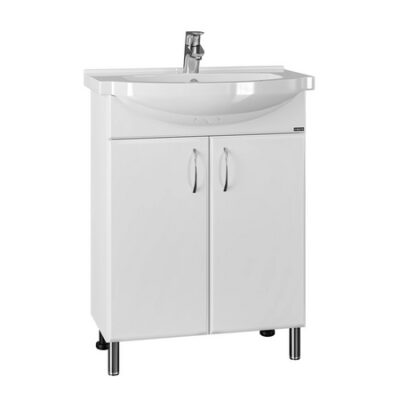 Белоснежная тумба СанТа Элеганс 65+ раковина, гармонично впишется в современный санузел. Простой дизайн дополнен блеском хромированных ручек и опорных