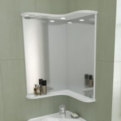 Угловое зеркало Аврора с подсветкой. Зеркало укомплектовано светильником, включателем, розеткой. Это отличный компактный вариант мебели