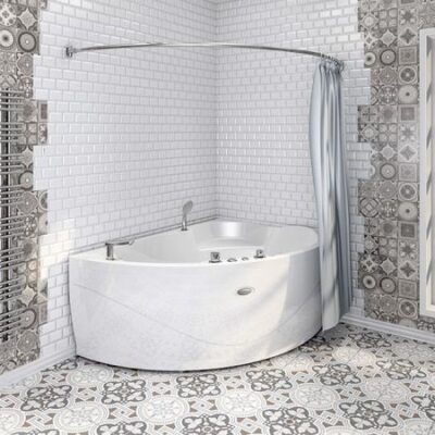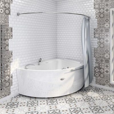 Карниз для шторки на ванну «Алари» — угловой карниз радиальной формы с размерами 168х120 см. Его изгиб копирует контуры одноименной ванны, что обеспечивает