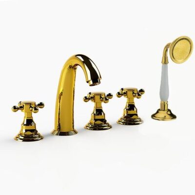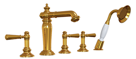 Невероятно красивый смеситель из пяти элементов «Маджоре» Gold идеально подходит для роскошных классических интерьеров ванной комнаты.