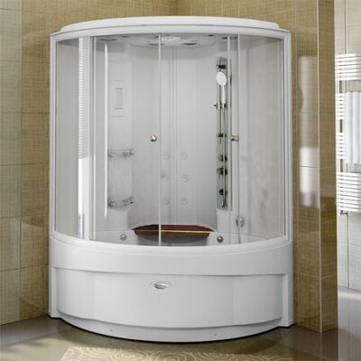 Душевой бокс «ЛАУРА» с крышей типа «сендвич», чаша ванны, рама-подставка, слив-перелив полуавтоматический, фронтальная панель, боковые стенки, крыша, стеклянные