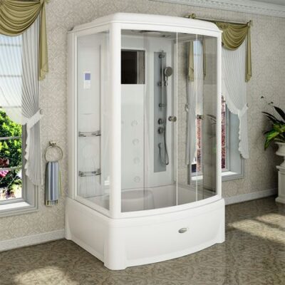 Душевой бокс «ДАНИЭЛА», чаша ванны, рама-подставка, слив-перелив полуавтоматический, фронтальная панель, боковые стенки, крыша, стеклянные шторки (матовые)
